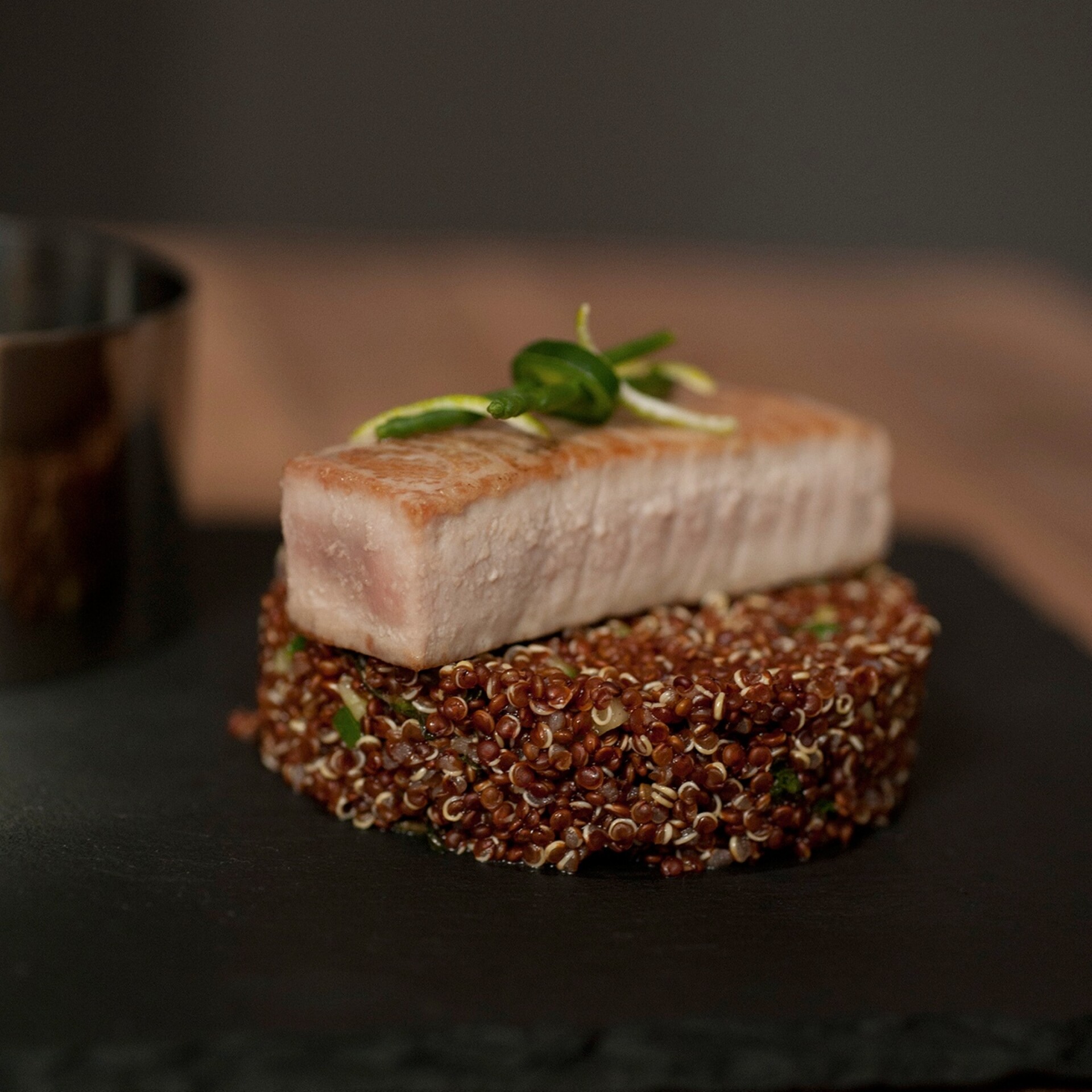 Was macht einen von einem Profikoch angerichteten Teller denn so anders? Kurz gesagt: Struktur und Disziplin. Da hat jede Komponente seinen fest definierten Platz und steht in Beziehung zueinander. Ungemein hilfreich bei der Strukturierung eines schönen Tellers ist ein Edelstahlring zum Anrichten. Gerade Gemüse oder Beilagen bekommen so eine klare Form und sie können Ihnen auch eine gewisse Festigkeit verleihen. Stellen Sie dazu den Ring auf den gewünschten Platz auf den Teller und füllen Sie vorsichtig die Speise hinein. Halten Sie den Ring und drücken Sie die eingefüllte Masse gut fest. Anschließend ziehen Sie den Ring vorsichtig nach oben ab. Unser Vorschlag: Richten Sie das Fleisch oder den Fisch auf dem zentral platzierten Beilagenrund an. Etwas Sauce rund herum träufeln, ein passendes Kräutlein oben drauf. Fertig.